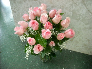 Loading... Please wait...Twice of these breathtaking long stem roses IS nice!!! This arrangement consists of 2 dozen long stem pink Ecuadorian roses with upgraded greenery and filler with a rosette satin bow.